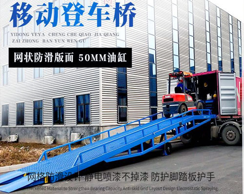煙臺登車橋-煙臺集裝箱卸貨登車橋-物流登車橋用于無裝卸設(shè)備的貨臺及流動裝卸場所,是與叉車配合使用的貨物輔助設(shè)備。借助該設(shè)備,叉車能直接駛?cè)肫囓噹麅?nèi)部進(jìn)行批量裝卸作業(yè)。只需單人操作,不需動力電源,即可實(shí)物的安全快速裝卸。既可使您減輕勞動強(qiáng)度,又能成倍提高裝卸作業(yè)效率,加快物料流通速度,獲取更大經(jīng)濟(jì)效益。